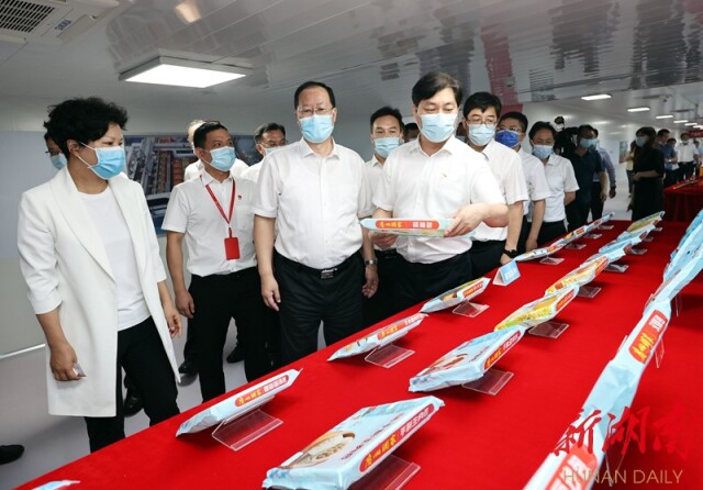 (毛伟明在湘潭县广州酒家集团利口福食品有限公司调研。照片均由湖南日报•新湖南客户端记者刘尚文摄)